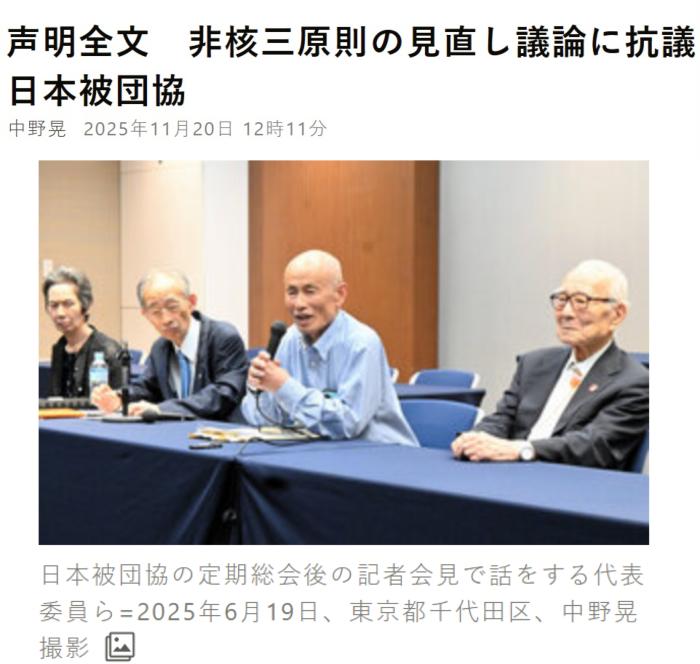 日本核爆受害者团体声明:强烈反对高市考虑修改“无核三原则”